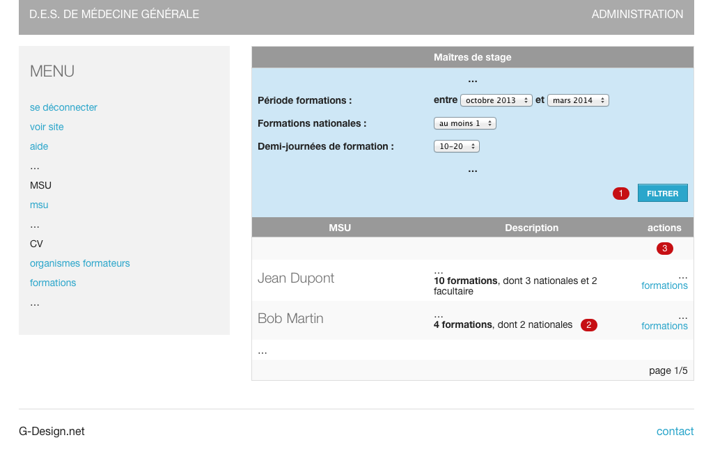 Des nouvelles filtres permettent d'afficher les MSU en fonction des formations suivis pour une période donnée. (1)
